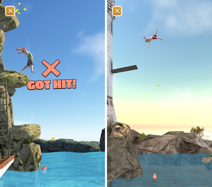 在一局游戏中,跳台会随游戏进展而升高,指定入水区域也会变窄,完成成功的一跳变得愈加有挑战性。