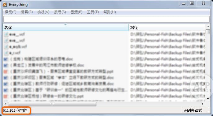 第一次运行时,Everything 会建立索引数据库,但是速度很快,通常只需要几秒钟就可以建立好索引。