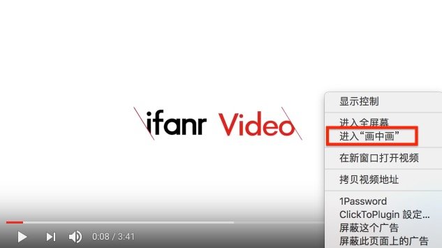 - Youtube 很早就拥抱 HTML5 了,然而也没有看到「画中画」按钮,怎么回事?经过一番探索,竟然需要在视频窗口上右键再右键才看到「进入画中画」选项。不过我相信进取的 Youtube 很快就会更新支持的。