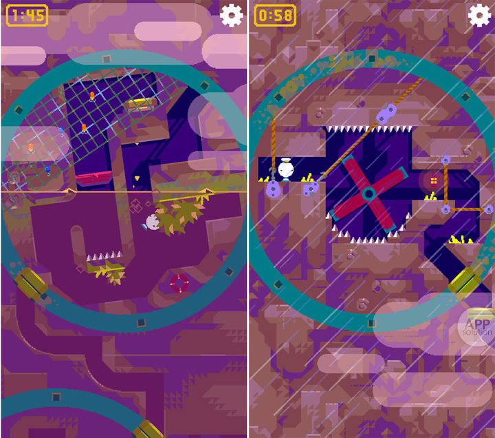 不同于通过操控主角来推进游戏的普通探险游戏,游戏中你需要充分利用重力的作用。地下迷宫中遍布带有机械装置的圆盘,当你转动圆盘,男孩就会在重力作用下动起来,你得努力让他躲过锯齿装置和带有触角的炸弹、排出圆盘中的水,才能通往下一个出口,继而顺利通关。