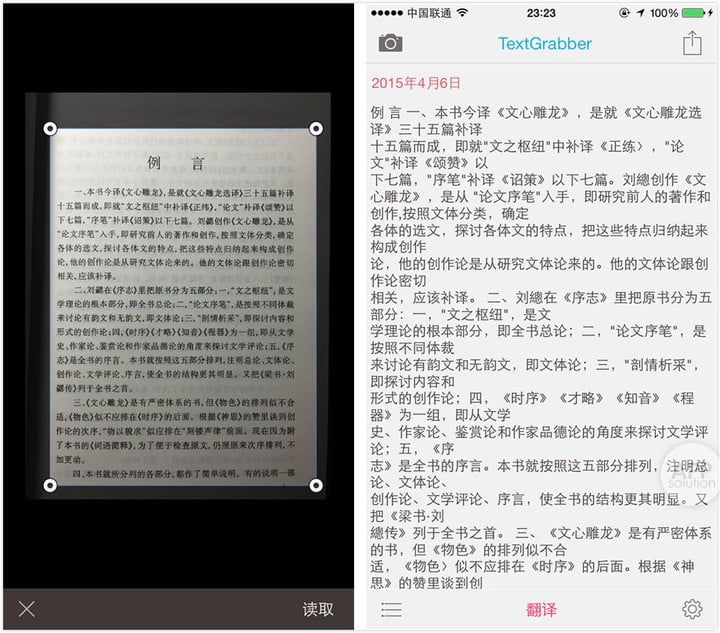 而 AppSo(微信号 appsolution)此前多次推荐过 TextGrabber 这个 app,它就可以轻松实现图片转文字,而且还自带搜索、翻译引擎等功能。