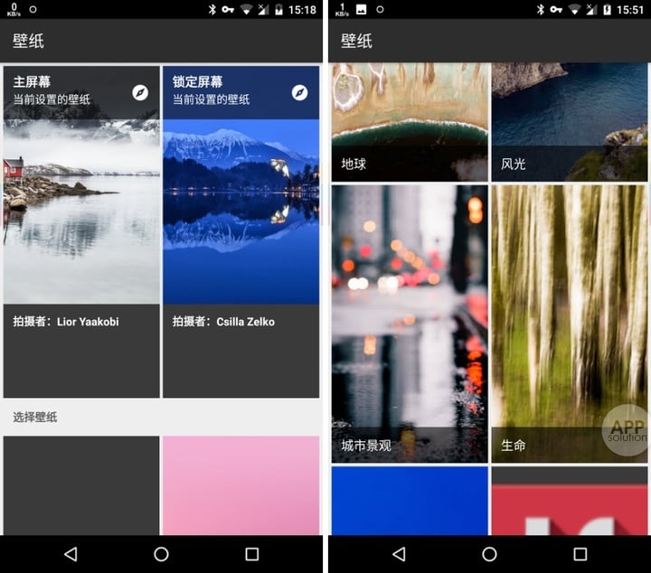 下方则为壁纸选择区,可以根据自己的需要选择壁纸类别,Google 提供了 5 个分类供用户选择。