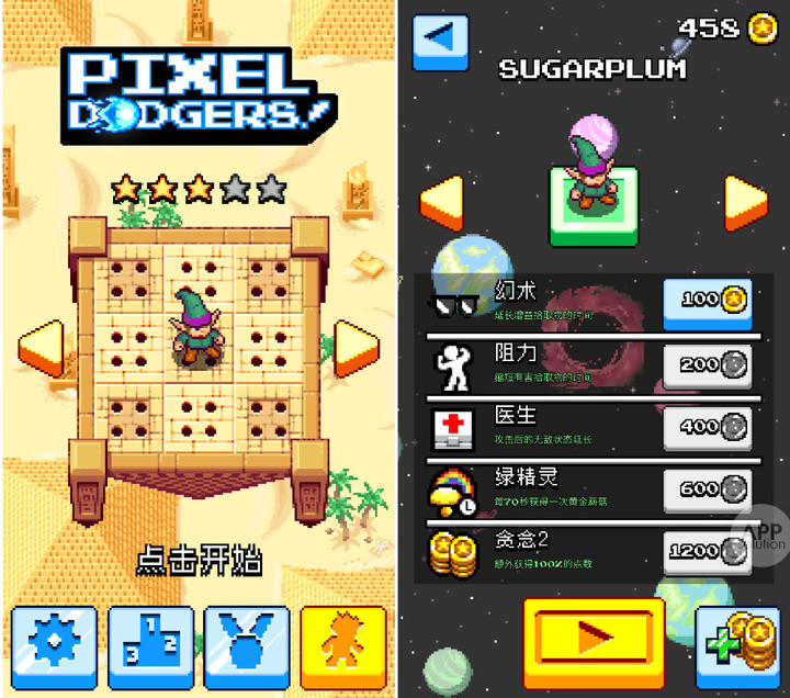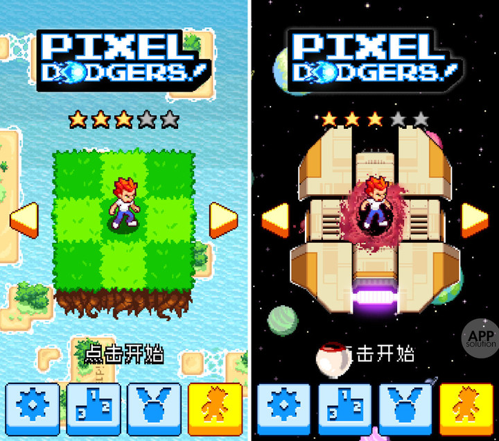 Pixel Dodgers 适用于 iOS 8.0+ 的 iPhone 和 iPad 及 Android 4.0.3+ 的设备,iOS 版 117 MB,Android 版 40 MB,免费有内购。