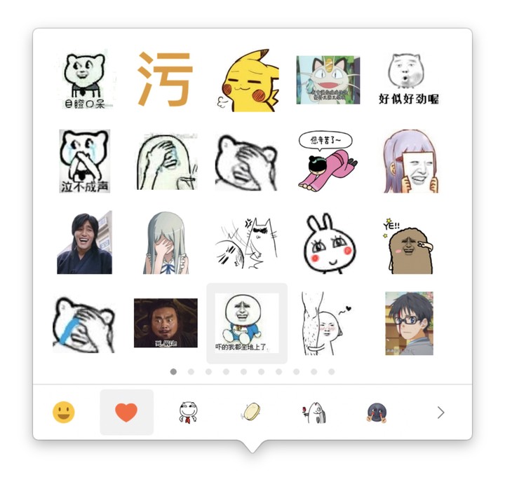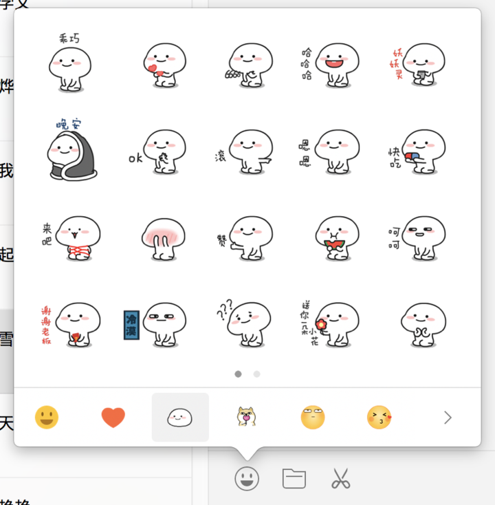 表情面板可以使用鼠标滚轮翻页:某 AppSo 同事跟我说,自己一直不能通过滑动触控板或者鼠标滚轮来给表情翻页。更新 2.1 版后,他终于不用去手机上发表情了(因为在 Mac 版上太麻烦)。