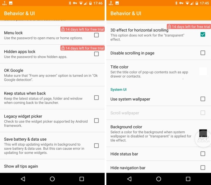 SquareHome 2 有强大的自定义功能,可以调整瓷砖颜色和大小或者自定义瓷砖用途。应用提供了非常精致的小部件,比如手电筒,指南针和动态时钟(见上图),功能分区一目了然,可以说是一款同时满足颜值和效率的启动器。