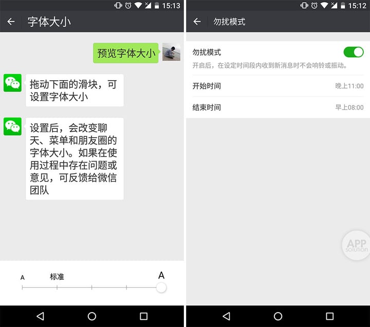 在中国,微信是一款横跨各个年龄层次的「国民应用」,所以我以微信为例,讲讲 app 的设置。但由于大家都很熟悉微信了,所以我不提供详细的操作步骤,就提一些要点: