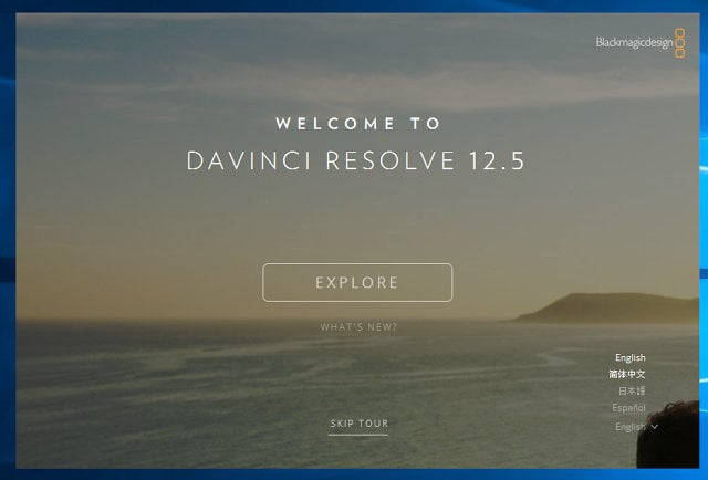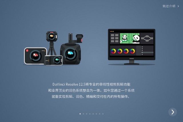 安装 DaVinci Resolve 后第一次开启,会有亲切的导引画面,而右下方可以将语言切换到简体中文。