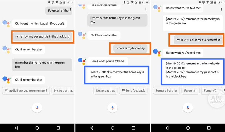 - what did I ask you to remember? 它就会告诉你曾经让 Google Assistant 记住的所有东西。