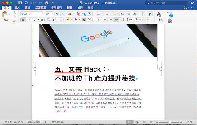 下图就是我转换四十几页 PDF 后,Smallpdf 产生的 Word 文档,效果非常优异,不仅中文大多没有出错(只有标题少转了一两个字),而且格式也算是没有错乱,连 PDF 版面都有保留!