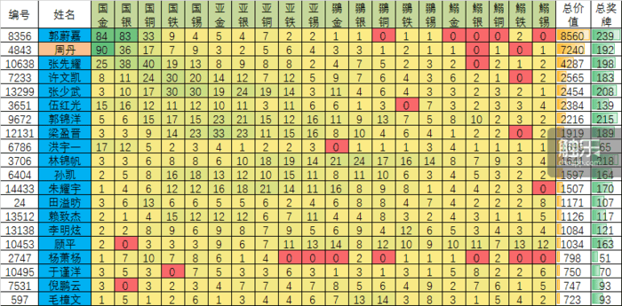 郭锦洋制作,基于全网前 20 名雷友的某项数据分析。