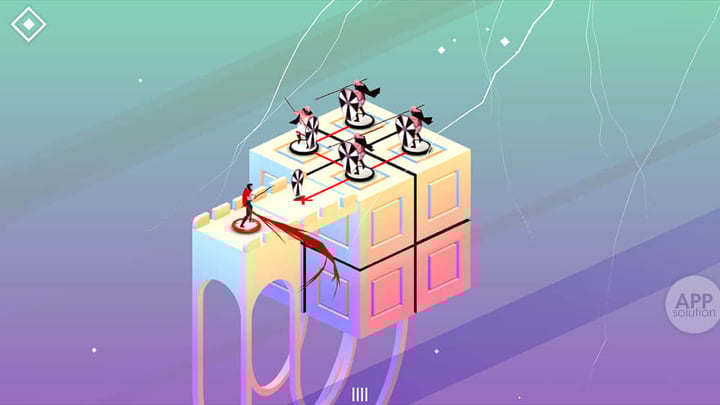 Euclidean Lands 将等距离的建筑和回合运动融入到一个个类似于魔方的立体空间内。通过旋转、移动脚下的方块改变世界的视角和位置,移动上面的主角干掉邪恶的敌人,从而进入下一关卡。