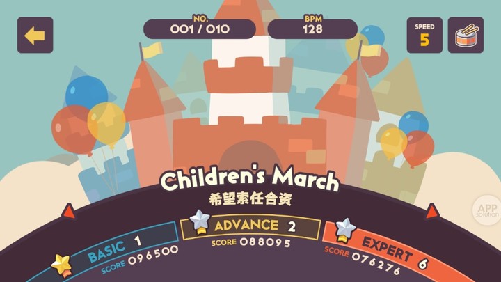虽然这个游戏刚上线,歌曲数量还不是很多,但是歌曲从传统的进行曲到清新明快的电子音乐,跨度不小,选曲也很有自己的风格,加上演奏时的小军鼓音效,游戏体验可以说是自成一派。