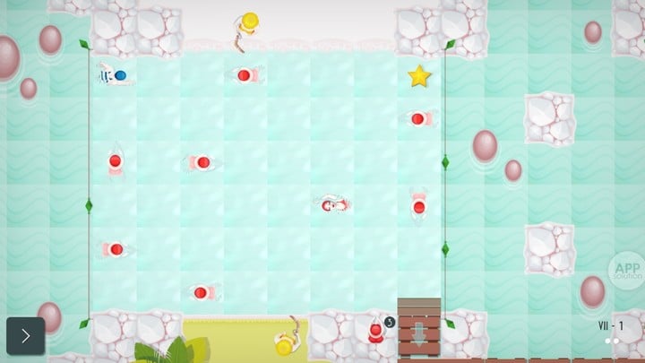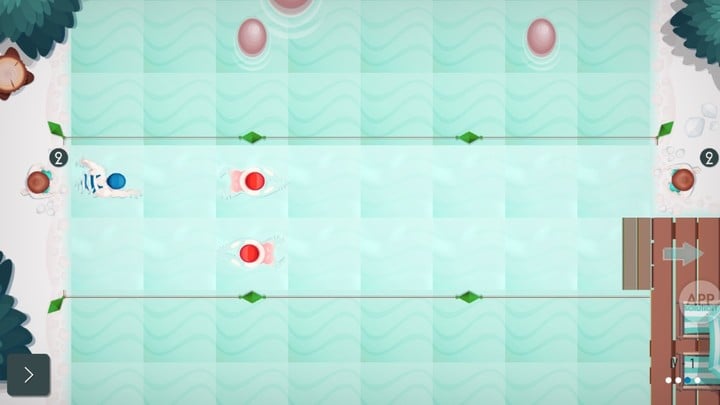 游戏中,玩家会遇到 12 种不同类型的泳者,每一种泳者都拥有不同的游泳轨迹,从简单的蛙泳者到泳姿更加华丽的其他泳者,甚至是到处扔捣乱的熊孩子,都应有尽有。而每一种泳者一步走的格子数各不相同,玩家需要提前算好它们每一步走的格子数,才能完美避开。