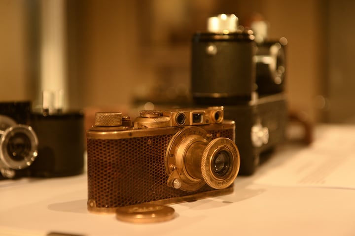 1914 年,Leica 相机的原型机「Ur – Leica」诞生,由 Oskar Barnack 所设计。它为风景摄影使用的携带型相机,也是第一台使用 35 mm 电影软片的相机,并且成为摄影历史的原始机。—— 全金属打造、可伸缩镜头,是一台能够避免重复曝光,并在相机里结合快门与转动胶卷的相机。