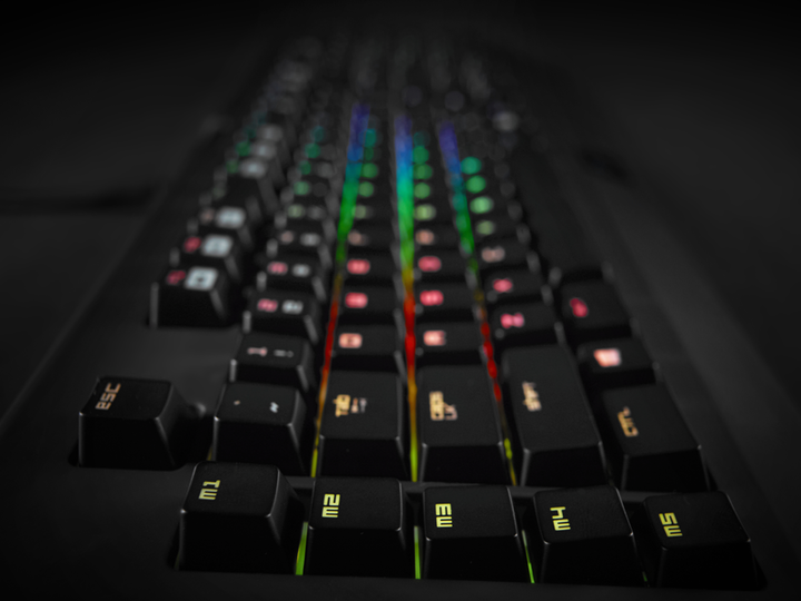当然,Razer BlackWidow Ultimate Chroma 可不是花瓶。它配备 50g 触发力的 Razer™ 机械式按键开关,拥有 6000 万次按键寿命。最多支持 10 键按下识别无冲突,当然,它同样拥有 5 个可自定义的宏按键。