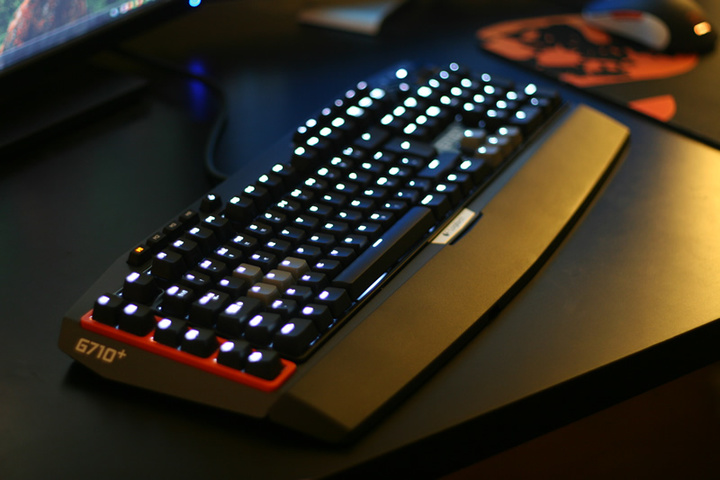 当然 Logitech G710+ 的特点不仅如此,它还内置 6 个可编程的 G 键,每个 G 键可配置 3 个宏,这样便可以在同一个游戏里配置多达 18 个单独功能。更贴心的是在游戏中我们总是会不小心误操作返回桌面,此时按下 G710+ 的专用禁用按钮便可以轻松禁用所有 Windows 快捷键。