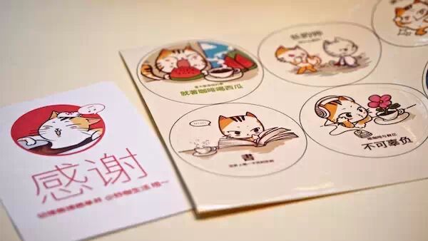 这只手绘猫是「喵咖啡」的吉祥物,她喜欢一边走路一边玩手机,也会不小心撞到头。算是一只科技范儿十足的萌宠,毕竟她也是喜欢看《星际穿越》的。