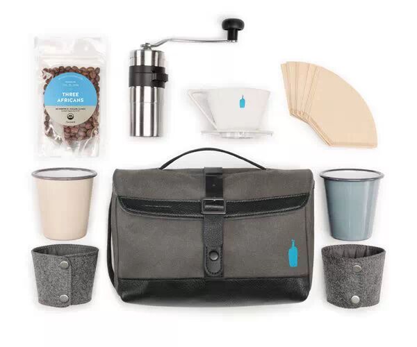 在寒冷的旅途中如何来一杯温暖的咖啡呢?TIMBUK2 x Blue Bottle Coffee 就合作推出了旅行咖啡装备。它配备了一个不锈钢手摇式磨豆机、滤杯、滤纸、和两只咖啡杯。带着他,随时随地可以来一杯咖啡振奋心灵了。