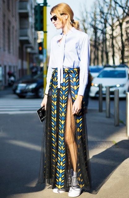 自古蓝衬衫配裙子,A 字裙、过膝包臀裙、长裙都十分合适。刚毕业的你选择 A 字裙搭配最合适,年轻又活力。▼▼▼