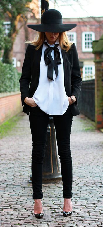 黑外套 + 白衬衫 + 黑裤子,加点小心思再看看