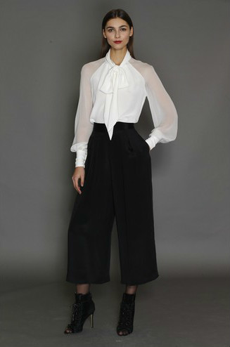 觉得单纯的白衬衫太单调?那么你可以试试加上「蝴蝶结」这个元素。加上一个宽松的蝴蝶结,比普通衬衫多了一分雅趣和灵动,但又不失优雅,女人味十足。