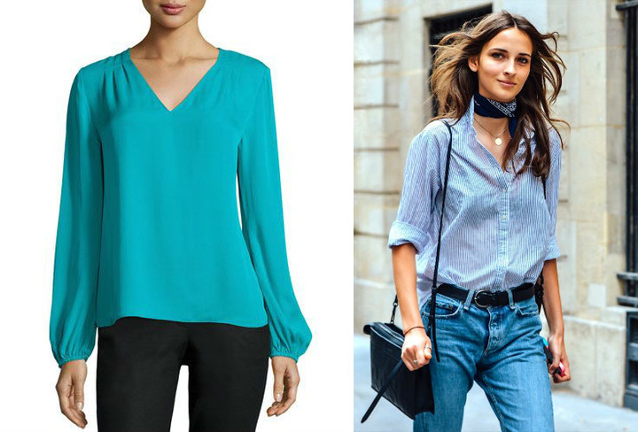 不同于蝴蝶结衬衫最好选质地柔软的,棉麻面料或更硬挺质感的蓝色衬衫更适合我们亚洲人。看下对比图。▼▼▼