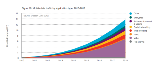 爱立信最新的移动报告预测,2018 年全球智能手机用户将达 45 亿,届时全球 60% 的人口将会被 LTE 网络覆盖。 数据还显示,目前视频流量已经占据移动数据流量的大部分,预计在未来五年内,视频流量将以每年 60% 的速度递增。