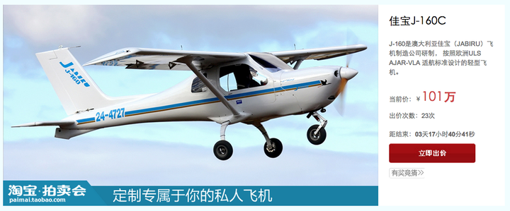 9 月 12 日上午 10 点,5 架崭新的小型飞机在淘宝进行拍卖,起拍价最低仅为 1 元。此外,还有一架二手直升机将采取一口价的方式竞拍。