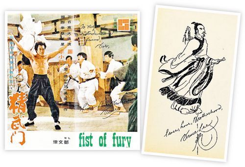 李小龙今年已逝世 40 周年。斯宾克拍卖行将在香港拍卖他的个人物品及电影珍品,包括他于 1972 年参与设计的《死亡游戏》黄色连身战衣,还有戏中的双节棍,估价约 30 万元。 其余拍卖品还有李小龙设计的玉石吊坠,《精武门》亲笔签名特刊,还有李小龙绘制及签名的僧侣图,这是当年开拍新片的人物造型,但因他去世而搁置。