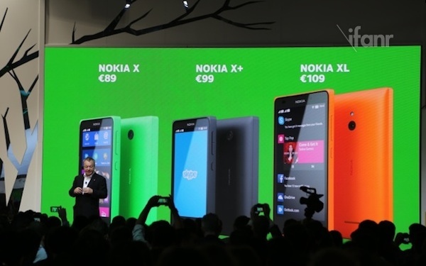诺基亚在本届MWC上一口气推出了三款安卓智能手机:Nokia X、Nokia X+ 以及 Nokia XL,售价分别为 89 欧元、99 欧元、109 欧元。 发布会上并未多言配置,根据此前曝光,Nokia X 定位入门级别。