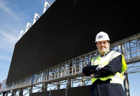 “Big-Hoss”即将被吉尼斯世界纪录确认为全世界最大的电视机。它安装在德州沃斯堡的 TexasMotorSpeedway 赛车场。周三晚间,第一次在大批观众面前亮相。 这台电视机由日本松下公司制造,对角线长度为 2852 英寸,其长度为 66.45 米,高度为 28.8 米。其长度超过了波音公司的 767 飞机,高度超过一栋七层大楼。 这台巨型电视机,能够显示 480 万个像素,以及 281 万亿种颜色。它使用了海量的 HDLED 光源来显示图像。