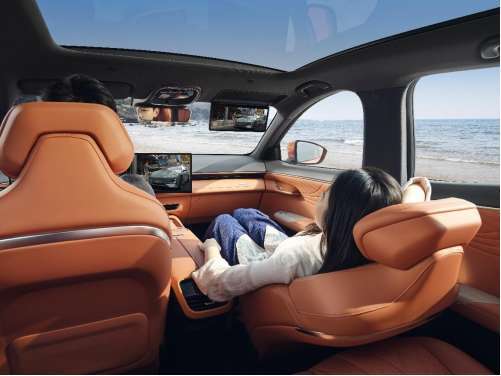 同时作为全球首款搭载前排双零重力按摩座椅及副驾超感智慧屏的车型,在这两项功能的加持下,深蓝S7的“女王”副驾体验也可以完美秒杀市场上的众多百万级“皇后”副驾。首先在座椅方面深蓝S7优中选优,采用了先进的座椅材质工艺,配合座椅的多向调节,可实现120°平躺(心脏与膝盖处于同一水平线,实现“零压感知“人体工程学),打造入座柔软,深层支撑、回弹性能优越的零重力体验,在长途驾驶时有效缓解前排乘员的疲惫感。而副驾超感智慧屏则在副驾区域创新性的设置了一块12.3英寸的高清大屏,可实现双屏联动分享等功能,配合副驾座椅的倾斜角度调整,让副驾的乘客可以用极为舒适的躺姿观看屏幕播放内容。配合上DEEPAL 14扬声器,可随心安排移动观影、休闲K歌、欢乐游戏等娱乐活动,为用户搭建出了一个别具一格的“移动私人影院”。整体来看,在众多全新玩法以及种种科技配置的加持下,深蓝S7的智能化水平已经远超同级,综合价值体验更是远超用户期待。
