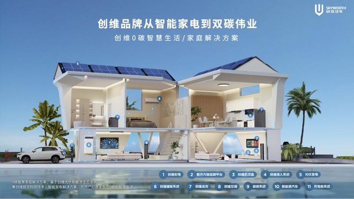 在此大背景下,创维提出“0碳智慧生活/家庭解决方案”,实现从智能家电到双碳伟业的壮举。创维汽车所代表的新能源汽车,是这一解决方案的重要环节。具体来看,创维汽车充分发挥集团布局优势,与创维光伏、创维储能组成“创维新能源三角”,打造创维灵光SKYLIGHTNING光储超充解决方案,领先行业步入“光储充运一体化”规模化之路。