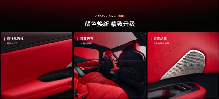 内饰“曜红”,如落日余晖浸入座舱,沉淀出天边赤霞般的温润光泽。这抹红,是不为他人目光,只为满足内心期许,引领自我奔赴所爱的绝对热忱。这抹红,也不再是豪华车专属的尊贵,而是领克Z20曜红版带给用户的越级体验。同时,曜红版还将很多设计巧思融入细节,比如“前行航向标”箭头化打孔、“循迹天际线”扶手台缝线、“银雾织章”银色金属感音响面罩、“日暮天穹”仿麂皮顶棚、赤霞珠色座椅皮质等专属设计,如艺术品般精致,将创新与人文情怀的温馨巧妙融合,感受之上与想象共鸣,让座舱成为移动的美学空间。