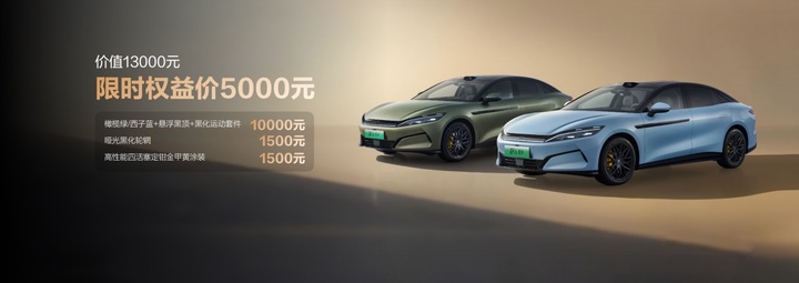 在产品之外,比亚迪特别推出丰厚外观限时选装权益。汉 L 原价 13000 元的外观套装(含橄榄绿/西子蓝车色、悬浮黑顶、黑化运动套件、哑光黑化轮辋、性能四活塞定钳金甲黄涂装),限时权益价仅需 5000 元!购车还可享高达 15000 元的超级置换礼。(以上权益截至 12 月 31 日)