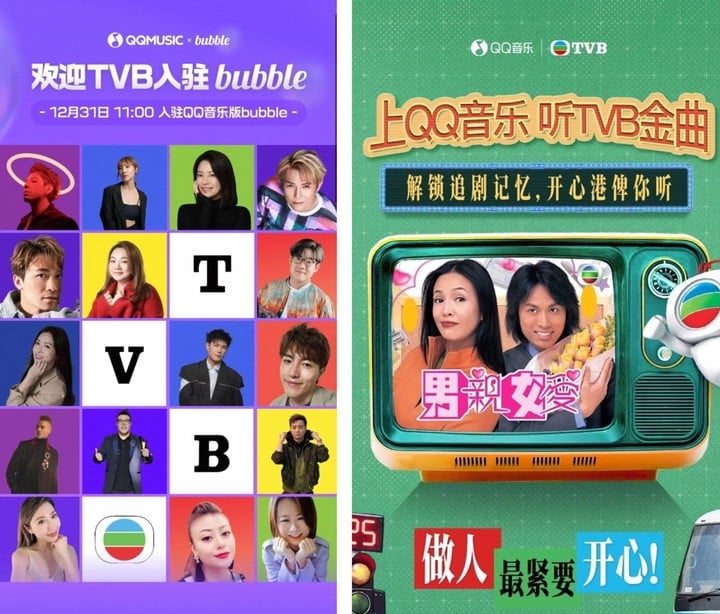 近日,TVB Music Group更是正式入驻QQ音乐版bubble,粉丝可添加黄博、张兴辰、刘洋、李佳、古淖文、赵浚承等TVB艺人专属好友,第一时间接收艺人的独家日常、幕后花絮、私信等内容。双方还联手打造”开心港剧场”,让用户在港剧金曲中找回追剧的快乐记忆。