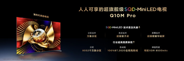 为了让SQD-Mini LED可以真正快速普及,让巅峰画质人人可享,新年伊始,TCL又正式推出搭载完整SQD-Mini LED技术的TCL Q10M Pro,完美承载“画质铁三角”,在音画体验、外观设计到操作逻辑等方面,完全看齐旗舰级电视,实现了“人人可享的超旗舰级SQD-Mini LED电视”的初心。