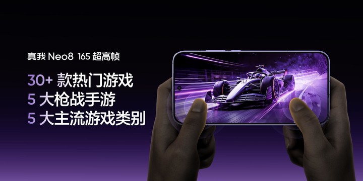 与此同时,作为一块面向电竞与日常双重高频使用的旗舰级屏幕,真我Neo8还支持3D超声波指纹,实现更快、更准、更安全的解锁体验,并搭配晶铠玻璃,抗摔耐刮能力显著提升,裸机使用更安心;同时优雅大R角+视觉四等边设计更在沉浸观感与高端质感上全面对齐旗舰水准。“无生态,不高刷”,165Hz并非单纯的参数堆叠,而是通往高能电竞体验的入场券。真我Neo8以165Hz三星苍穹屏为核心,致力于打造最强超高刷游戏生态,流畅度狠超上限。