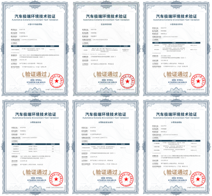 在中汽中心的权威见证下,长安旗下多款车型通过了冬季六大极端场景的技术验证 。