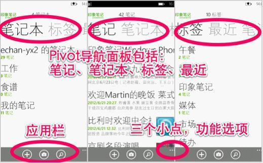 下面来看看印象笔记在 Windows Phone 上是什么样子吧: