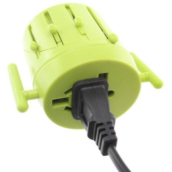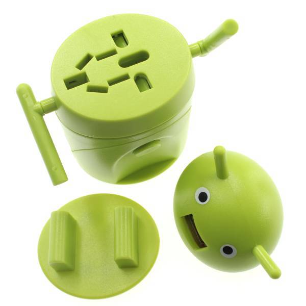 日本的 EVERGREEN 公司近日推出了一款 Android 机器人外形的旅游用万能插头转换器,重 140 克,兼容 BF 型、C 型 SE 型、A 型 O 型等世界上主流的插座接口类型。整款产品设计十分简洁,由带有 USB 接口的头部、转换器正体和防尘底部三部分组成,不用时(尤其是顶部的 USB 接口)均可以拆卸。切换各式插头的操作只需要利用侧边的推杆就可以完成,不过需要注意的是,这款产品的插座转换功能和 USB 接口的充电功能不能同时使用,所以还是用笔记本电脑上的 USB 接口给手机充电吧。