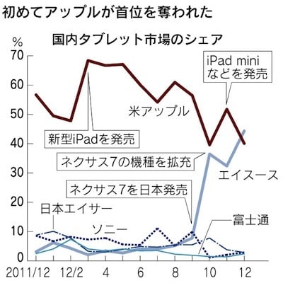 调查报告指出,虽然 iPad mini 在商店的短缺是导致 iPad 市场份额下滑的一个原因,但对调查数据分析后发现 Nexus 7 的价格是更重要因素——精明的日本消费者做了一个对自己有利的权衡。