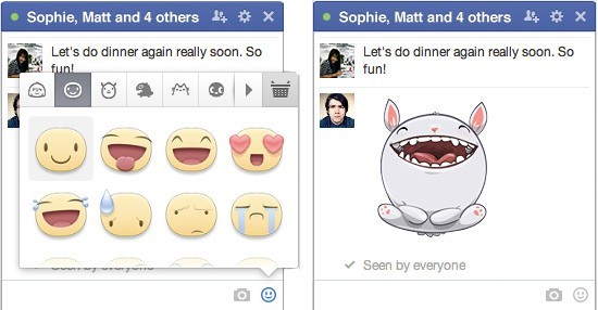 现在,Facebook 用户可以在桌面端的 Facebook 的 Messages 界面,点击小笑脸按钮就可以弹出贴纸界面然后选择想要发送的贴纸即可。使用过程跟国内 QQ 表情基本一致。