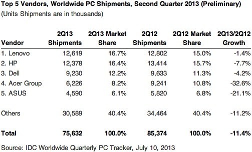 唱衰 PC 产业的论调由来已久,而这次根据 Gartner 和 IDC 提供的数据来看,PC 2013 年二季度出货量同比下降了 11.4% 之多,可见 PC 产业的寒冬确实已经到了。
