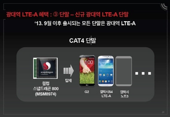 期待三星芯片的人可能要失望了,韩国运营商 KT Corporation 已经确认韩版 Galaxy Note III 将采用高通 Snapdragon 800 处理器。在这份内部宣传单上,KT Corporation 虽然没有列出产品照片,但还是明确 Galaxy Note III 将和 LG G2 和三星 Galaxy S4 LTE-A 一样,采用高通芯片。