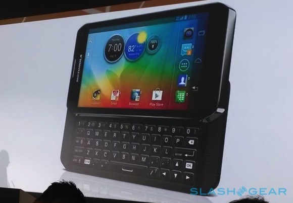 终于轮到摩托罗拉的设备在 IFA 上亮相了,这款未透露名字的手机和之前曝光的全键盘手机 Droid 5 很相像,由 Sprint CEO Dan Hesse 揭开面纱。