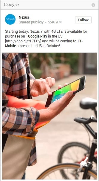 支持移动网络的 Nexus 7 总是要稍晚点出来,去年这样,今年也如此。虽然七月发布新 Nexus 7 时 Google 承诺将很快推出 4G 版,不过还是让用户等了一个多月。