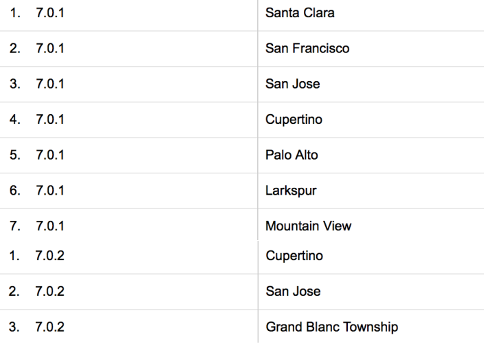 iOS 7 即将在几天后推送,不过到时收到的可能是 iOS 7.0.1。苹果正在安排员工测试 iOS 7.0.1、iOS 7.0.2 以及 iOS 7.1,负责测试新系统的员工主要分布在旧金山、圣约瑟和山景城几个城市。