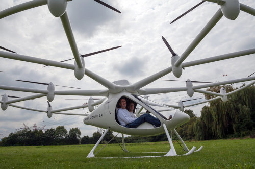 e-volo VC200 拥有 18 个电动旋翼,整个机身构造都可拆卸,设计容量为 2 人,设计航程 100 公里,飞行高度约 2000 米。
