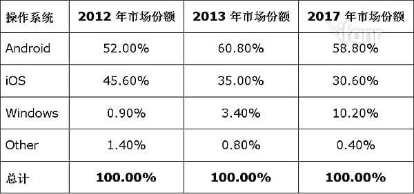 全球平板电脑操作系统市场占有率预测报告: